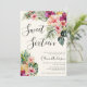 Um moderno modelo de 16 convites tropicais para uma festa temática de verão. Essa tendência convida a apresentar flores de hibisco de aquarela, florais de plumeria, folhas de palma e abacaxi.