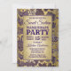 Convide seus hóspedes em estilo com este Convite de festas de Mascarada quic 16, doce, para usá-los. Esta bela design de ornamentado falsa ouro e máscaras de mascarada cor roxa num fundo texturizado de ouro falso faz o elogio perfeito para os detalhes da sua festa. A parte traseira da placa tem um padrão correspondente de máscaras de mascarada púrpura em ouro. Projetado pelo artista © Tim Coffey.