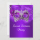 Convites Doce Mascarada de Prata Roxa com Máscara de 16 ren