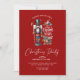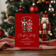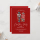 "Desejos quentes para uma agradável época de Natal! Junte-se a nós para uma festa mágica do tema do Natal, adornada com um charmoso preguiçoso e doce cana-doce. Vamos comemora com tipografia vermelha elegante em um fundo vermelho de férias sereno.