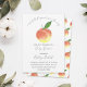 Estes doces convites de pêssego são perfeitos para quem celebra um chá de fraldas este ano. O design apresenta uma cor d'água pintada manualmente em um simples fundo branco, com uma redação fácil de personalizar modelo.