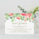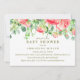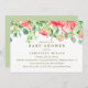 Um design de convite elegante para chá de fraldas com uma borda botânica de cor d'água em tons rosa-d'água e verdes. Este item faz parte de uma coleção. Visite nossa loja para outros itens correspondentes. Para solicitação personalizada, escreva para citronelladesign@gmail.com