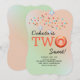 Convite de aniversário com rosquinhas doces e balas coloridas de nonpareils e estrelas brilhantes. O fundo é gradiente