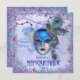 Uma bela máscara de mascarada de penas de pavão com pavões, brilho e impressão de bambo em detalhes elegantes. Perfeito para o seu temático evento de 16 Festas de aniversário. Bonito brilho púrpura e azul pastel e as estrelas rebordam sobre um fundo de cor aquosa macia com miçangas e sotaques de pérolas. A parte traseira tem plano de fundo e borda correspondentes. Todo o texto em frente e verso está pronto para você personalizar com as informações de sua parte.