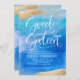 Este convite para 16 festas de aniversário Doce moderno apresenta um fundo de aquarela azul com sotaques falsos de ouro e brilho. A saudação do roteiro de caligrafia diz "Doce Dezesseis". Personalize-o com seus detalhes. Você pode até adicionar uma foto ao fundo.
