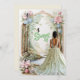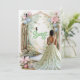 Linda imagem de uma adolescente vestindo um lindo vestido verde de menta com sotaques brancos. Ela está parada perto de uma floresta bonito enquanto um rio passa. Doce 16 é feito em uma fonte verde de luz bonito. Há um quadro de ouro com videiras, flores cor-de-rosa e delicadas Fadas mágicas. Personalize com suas informações.