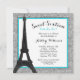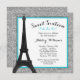 Um convite temático glamoroso do doce 16 de Paris. Mostre na cerceta azul e preta. Caracterizando uma ilustração da torre Eiffel com um fundo do brilho da prata do falso. Convide seus convidados no estilo com esta noite moderna no convite de festas de Paris. O design é gráficos impressos plano - BRILHO NAO REAL. Gráficos por ilustrações de JW em MyGrafico