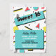 Convite do doce dezesseis do divertimento para um partido 90s temático que caracteriza um teste padrão retro em amarelo, em vermelho, e a turquesa.