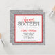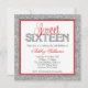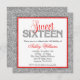 Um convite de aniversário moderno do doce dezesseis. Caracterizando um brilho da prata do falso projete com acentos do vermelho e do preto. O design é gráficos impressos plano - BRILHO NAO REAL.