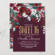 O marsala elegante, extravagante, e do país de Borgonha vermelho e das flores brancas e das folhas do marfim arranjo com falso imprimiu o doce de inverno da tipografia da folha de ouro 16 convites de festas da celebração do aniversário. Este design clássico e sofisticado é perfeito para a menina elegante, na moda, e à moda do aniversário. Personalize com sua própria mensagem na parte dianteira e uma inicial personalizada do monograma na parte traseira. Todo o design do impressão da foto.