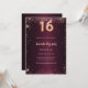 Para um doce elegante 16, 16 anos. Uma cor de fundo de gradiente burguês. Decorado com faíscas rosa douradas. Personalize e adicione um nome e detalhes da parte. O nome é escrito com um script de estilo manuscrito