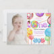 Candy Sweet One primeiro aniversario Girl Bonito Convite Colorido Procurando um convite para rosquinhas fofo e divertido para um doce aniversário de uma garota? Rosquinha preocupada! Basta editar texto e personalizar seu próprio convite fofo!