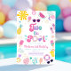 Este convite de aniversário para meninas apresenta ilustrações coloridas adoráveis de verão com sotaques falsos de folha de ouro.