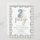 Dois ganso de bobo! Segundo aniversário com ganso, retângulo azul poeirento e retângulo ondulado e texto verde sábio.