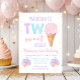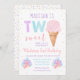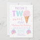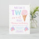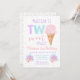 Este convite bonito apresenta um cone de sorvete e balões em cores pastel do arco-íris com faux gold foil confetti.