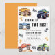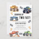 Atenção a todos os pequenos foliões! Preparem-se para aumentar a diversão com o nosso convite de aniversário "Crescendo rápido demais! Caminhões monstro para crianças de dois anos". Adornado com caminhões monstro adoráveis e vibrantes, este convite com tipografia moderna convida você a se juntar à celebração. Vamos rugir no segundo ano de vida com uma festa de aniversário épica! Esses convites podem ser impressos e compartilhados com os amigos ou baixados digitalmente para uma experiência de planejamento de festa fácil. Não perca a chance de se divertir muito nesta festa de segundo aniversário!