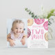 Os segundos convites de aniversário bonitos apresentam "[name] é dois doces" com os detalhes de sua festa abaixo, cercados por ilustrações de rosquinha de aquarela em tons de rosa. Adicione uma foto da aniversariante para completar esta design doce e caprichosa.