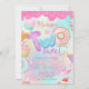 Um convite delicioso apresenta rosquinhas e sobremesas deliciosas com glacé de cor d'água pastel e muitas rosquinhas coloridas do arco-íris!