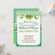 Celebre a festa de aniversário dos gêmeos com os convites de aniversário dos Casais dos dois gêmeos. Estas duas ervilhas em uma festa de aniversário de vagem têm 2 bebês em uma vagem verde de ervilhas em fundo de listras. Perfeito para a festa de aniversário de gêmeos.