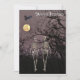 Dois esqueletos caminham juntos por uma floresta assombrada pela luz de uma lua de cheio, acompanhada por um morcego voador. O verso tem detalhes do partido em escrita branca contra fundo texturizado de uma cinza, e é decorado com mais dois esqueletos. Divertido e um pouco assustador, perfeito para o Halloween!