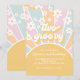 Convites Dois Groovy Pastel Retro Sol Flor de margarida boh