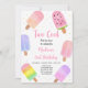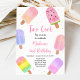 Este adorável convite apresenta picolés pintados manualmente em cores pastel.