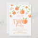 Este adorável convite apresenta pêssegos pintados à mão, flores e verde.