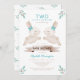 Convidado para chá de fraldas primavera gêmeo. Dois coelhos coelhos garotinhos, gêmeos, Chá de fraldas. Um chá de fraldas gêmeo com coelhos doces e verde.