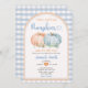 Dois Pequenos Pumpkin Editáveis estão no caminho Convite Azul e Laranja para Chá de fraldas Chamando Cute Boy e Rapariga Pumpkin Autumn Blue Gingham