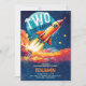 Precisa de ideias festas de aniversário para o seu filho fazer dois anos? Este colorido segundo convite de aniversário para meninos com tema astronauta e espacial, apresentando uma ilustração de um foguete que sobe para o espaço profundo com a lua e as estrelas ao fundo é apenas a passagem. Celebre o seu profundo astronauta com estes planetas e o convite para o espaço profundo que o fará feliz, se ele for louco por todas as coisas planetas, foguetes, espaço e trajes de astronauta. Um convite perfeito para os segundos aniversários.