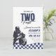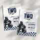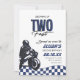 Sua cara está crescendo duas vezes rápido! Celebre o segundo aniversário dos seus filhos com o nosso convite de segundo aniversário de alta velocidade azul, preto e branco.