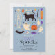 Este belo convite de segundo/segundo aniversário de um menino de halloween apresenta um fundo azul com os motivos do Halloween, incluindo um gato preto, um morcego, fantasmas, abóbora, doce, vassoura, esqueleto, lábios de vampiro e globo ocular. O verso apresenta um fundo roxo com padrões de aranha. Personalize-o para as suas necessidades. Você pode encontrar produtos correspondentes na minha loja.