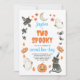 Um convite de aniversário temático de dois loucos do Dia das Bruxas para a festa de segundo aniversário do seu filho.