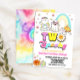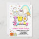 Dois segundo aniversário assustador da garota - Convite de Aniversário do Rainbow com Watercolor Retro Groovy Ghost Hippie Halloween