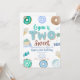 Celebre o seu pequenino, tornando o DOIS doce! Este adorável convite de aniversário para rosquinhas e doces é perfeito para rapazes ou festas neutras em termos de gênero. Apresentando doces aquosos em tons de azul, lacre e chocolate, este convite é moderno e divertido. Ideal para comemorações do segundo aniversário com um tema divertido de festa de sobremesa!