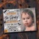 Estes convites divertidos e na moda são perfeitos para quem celebra um segundo aniversário neste Halloween. O design apresenta tudo assustador de um gato negro com morcegos voadores para uma teia de aranha, fantasmas, vassoura-bruxa, crânio e osso, bola mágica de vidro e uma abóbora-a-lanterna em preto, branco, cinza e laranja. A foto e o texto do modelo é fácil de personalizar e seus convidados do partido ficarão assustados quando receberem esses convites pelo correio!