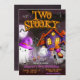 Spooky Season está chegando, comemore o segundo aniversário com este convite único. A mansão assombrada do Spooky é compatível com o fundo grunge, morcegos voadores e fantasmas bonitinhos para capturar a época mais assustadora do ano!
