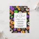Este padrão legal e fofo de Halloween é perfeito para um clima divertido e doce. Ele apresenta donuts ilustrados com jack o' lantern, abóbora, fantasma, aranha, milho doce, monstro e globo ocular em cima de confetes brilhantes impressos em falso com um fundo preto simples. A paleta de cores inclui verde, roxo, amarelo, laranja, marrom, vermelho, preto e branco. É divertido, único, engraçado e moderno. Aproveite este design feito à mão pela artista da La Femme, Rachel Matheney.