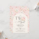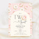 Convite de festa de 2º aniversário Donuts Rosa. Convite dois doces. Design moderno e fofo em rosa bege, dourado e creme. Apresenta donuts, arco e tipografia moderna em letra de coração. Perfeito para a celebração do segundo aniversário de uma menina estilosa. Personalize com seus próprios detalhes. Convites impressos da Zazzle ou modelo digital para impressão instantânea.