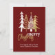 Cartão plano de Natal da Empresa na moda, feito em vermelho rico, com gráficos de arte de rabisco de árvores de Natal brancas e douradas, no topo. Personalize o texto para ler o que você quer. Cartão de cartões de natal corporativo de excelente que os funcionários apreciarão.