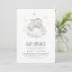 Este convite para o bebê elefante adormecido é perfeito para um simples chá de fraldas. O design moderno apresenta um animal de açafrão-safari agudo dormindo em uma nuvem macia com estrelas amarelas cintilantes.