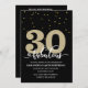 Preto Elegante com brilho dourado 30 e Convite de aniversário fabuloso com sotaques de brilho. Adicione os detalhes da sua festa usando nosso modelo fácil.
