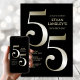 Convide seus amigos e entes queridos com este moderno convite de aniversário negro e dourado 55. A área de texto personalizável neste modelo de convite permite que você inclua facilmente todos os detalhes necessários para sua celebração especial de aniversário, incluindo as informações de data, hora, local e RSVP. Uma variedade de tipos de papel e estilos de canto estão disponíveis para seus convites exclusivos, juntamente com a opção de download se você preferir um formato digital.