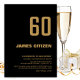 Um sofisticado e minimalista convite de aniversário 60º negro e dourado.