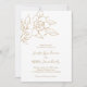 Convite de casamento Elegante para arte de linhagem com um simples esboço de lápis de uma flor de magnólia em ouro falso sobre fundo branco. Este adorável convite floral é excelente para um casamento de primavera ou verão.
