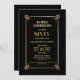 Um moderno convite de aniversário preto e dourado 60º.