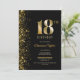Este preto moderno com o convite de aniversário dourado 18º brilho apresenta uma área de texto personalizável que permite incluir sem esforço todos os detalhes necessários para sua celebração especial de aniversário, incluindo a data, hora, local e informações de RSVP. Vários tipos de papel e estilos de canto estão disponíveis para seus convites exclusivos, juntamente com a opção de download.