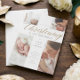 Celebre o Natal de seu filho ou filha e o primeiro aniversário com nossa bela, moderna, mínima e elegante design. Nosso design apresenta quatro imagens que criam a imprecisão de uma cruz. "Christening" é exibido na caligrafia moderna em ouro falso, com primeiro aniversario mostrado abaixo. O verso apresenta uma simples cruz de ouro falsa no meio.