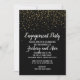 Este Dourado Confetti em Festa de noivado Negra é perfeito para uma elegante celebração de noivado. O design apresenta um confete dourado falso sobre um fundo preto com caligrafia branca clássica.