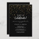 Este confete dourado | o convite de festas de celebração de vamos pretos é perfeito para um noivado simples, clássico, solteiro, aposentadoria ou qualquer evento ou festa. O elegante design apresenta falso confete de brilho dourado sobre caligrafia negra e minimalista com um moderno sentimento de vassoura.